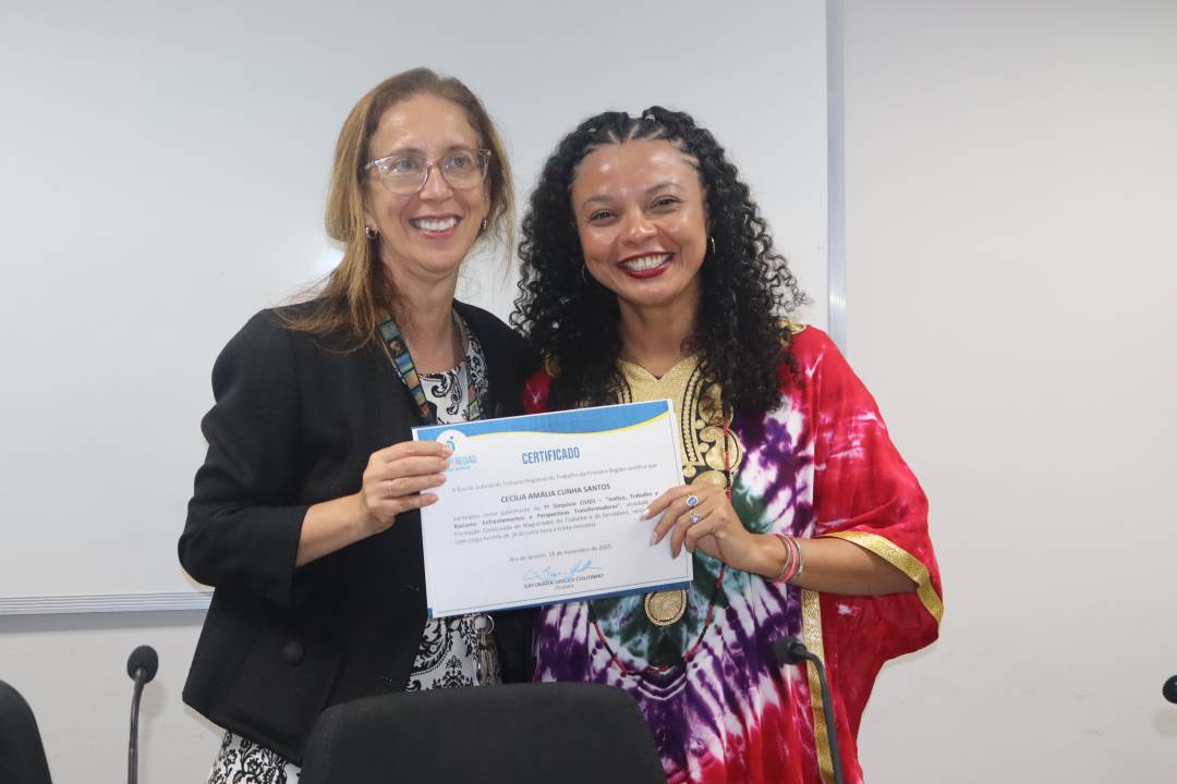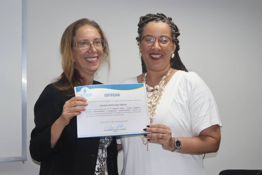 No último painel, dedicado ao papel dos atores sociais no combate ao racismo, a desembargadora Sayonara Grillo, diretora da Ejud1, conduziu a mesa, ressaltando que os avanços se tornam possíveis quando o Judiciário se dispõe a aprender com as experiências concretas da classe trabalhadora e com as vozes que historicamente sustentaram a pauta. Para ela, “não há, efetivamente, condições de a Justiça do Trabalho cumprir o seu papel sem ter uma capacidade de escuta ativa, e uma escuta que nos transforme”.