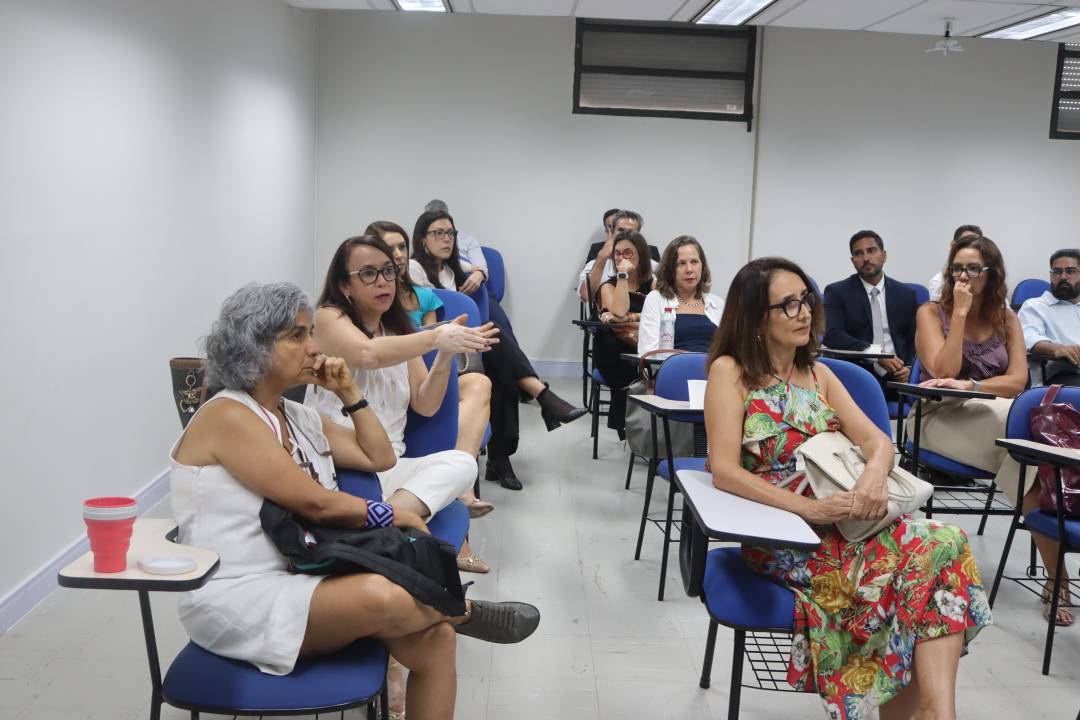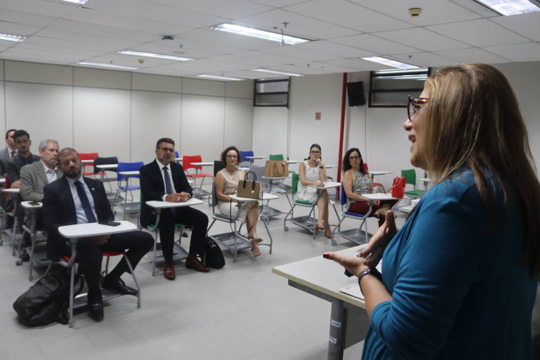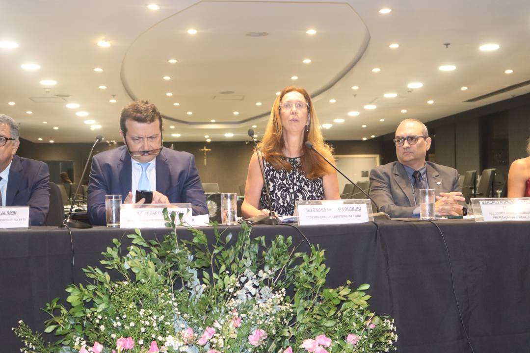 A desembargadora Sayonara apresentou o desenho pedagógico do evento e situou o Fórum no contexto institucional da Escola Judicial. A diretora da Ejud1 afirmou que o encontro foi construído “com atenção especial à paridade, à diversidade e à competência dos saberes” e chamou atenção para a importância de vincular o projeto formativo à centralidade dos direitos humanos e do trabalho decente. Sayonara enfatizou que “o Fórum busca criar as possibilidades para a construção de respostas jurídicas que, observando o marco do direito constitucional do trabalho, organizem-se em torno da preservação e da promoção do trabalho decente”, acrescentando que a capacitação deve ser compreendida como política pública institucional.